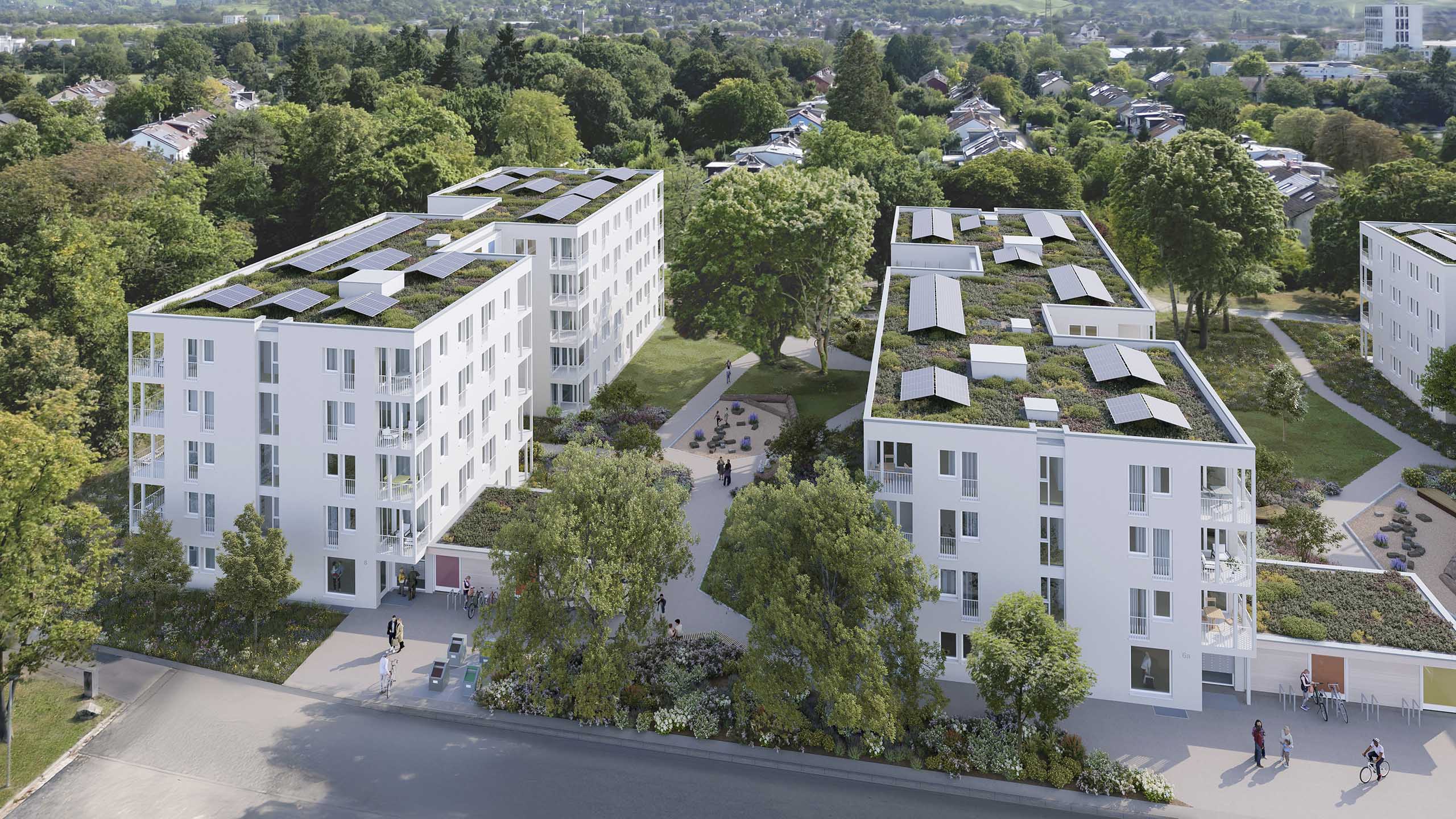 Großzügige, parkähnliche Grün- und Aufenthaltsflächen mit Frei- und Spielbereichen laden zum Verweilen ein und fördern das Miteinander. Ergänzt wird das Projekt durch ein klimafreundliches Energie- und Mobilitätskonzept, das die nachhaltige Ausrichtung der Anlage unterstreicht. Die Neubauten werden im Effizienzhaus-Standard 55 errichtet. Die Fertigstellung ist bis 2027 geplant. Der Gebäudekomplex ist Teil des Corporate Living Freiburg-Konzepts.